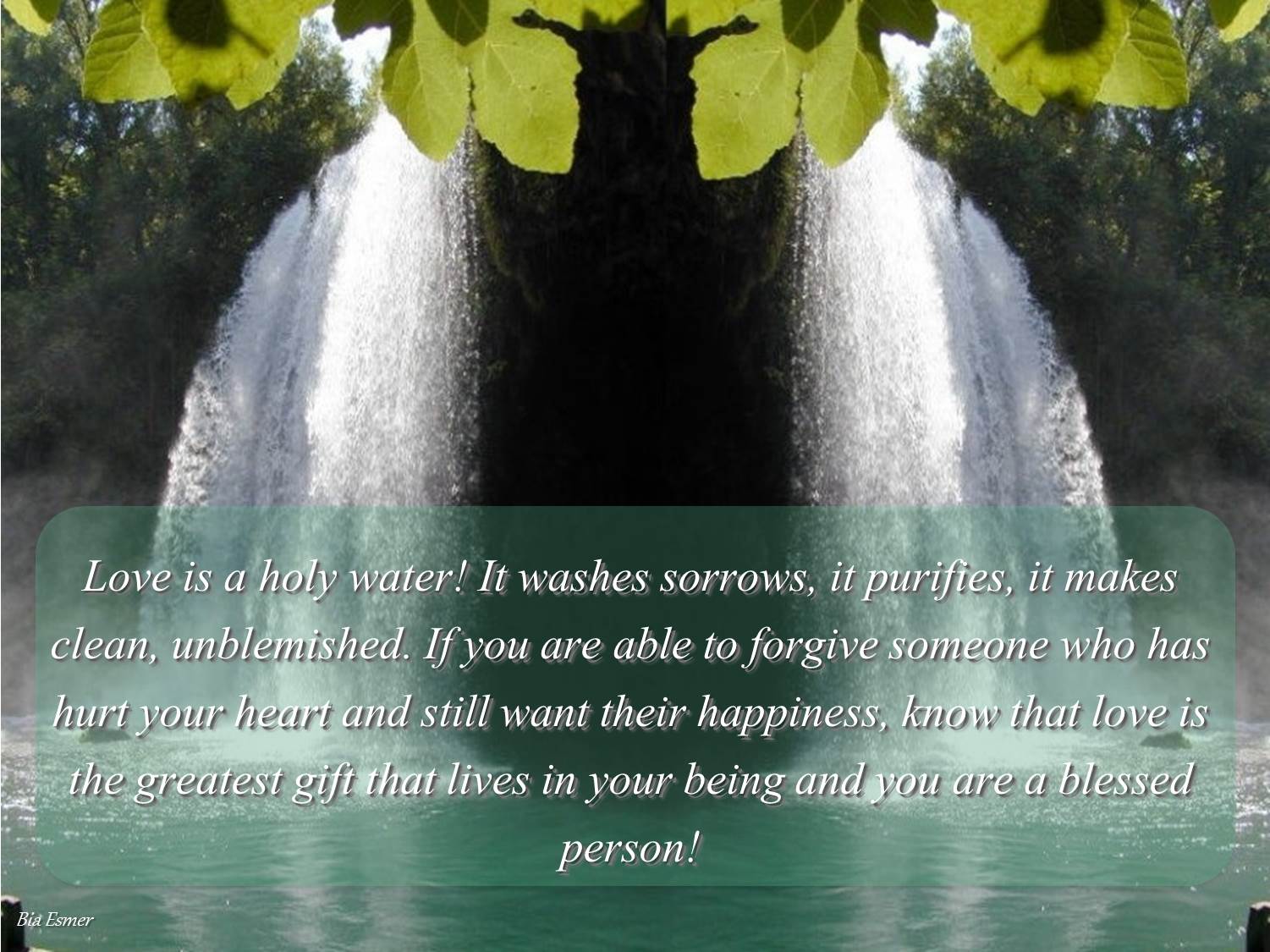 Love is a holy water! It washes sorrows, it purifies, it makes clean, unblemished. If you are able to forgive someone who has hurt your heart and still want their happiness, know that love is the greatest gift that lives in your being and you are a blessed person!